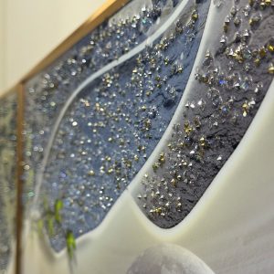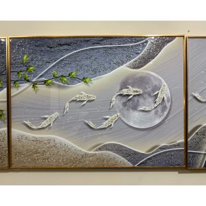 Abstract Textured Koi Fish and Moon Crystal Painting – Set of 3