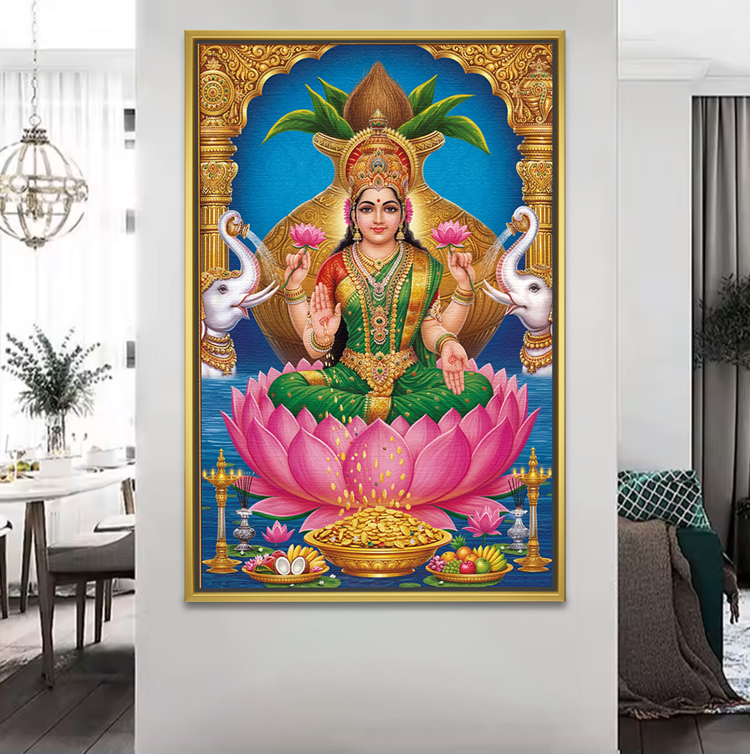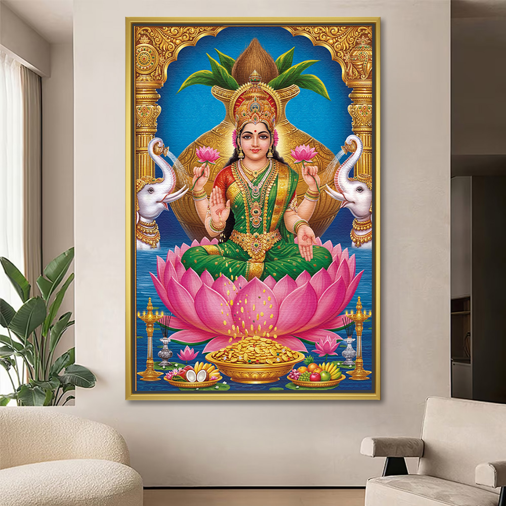 Auspicious Gajalakshmi Showering Wealth Traditional Decor Print