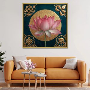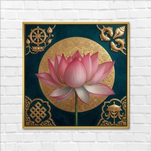 Auspicious Golden Symbols Lotus Wall Art