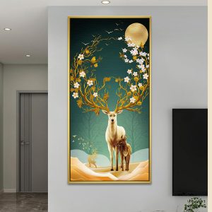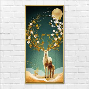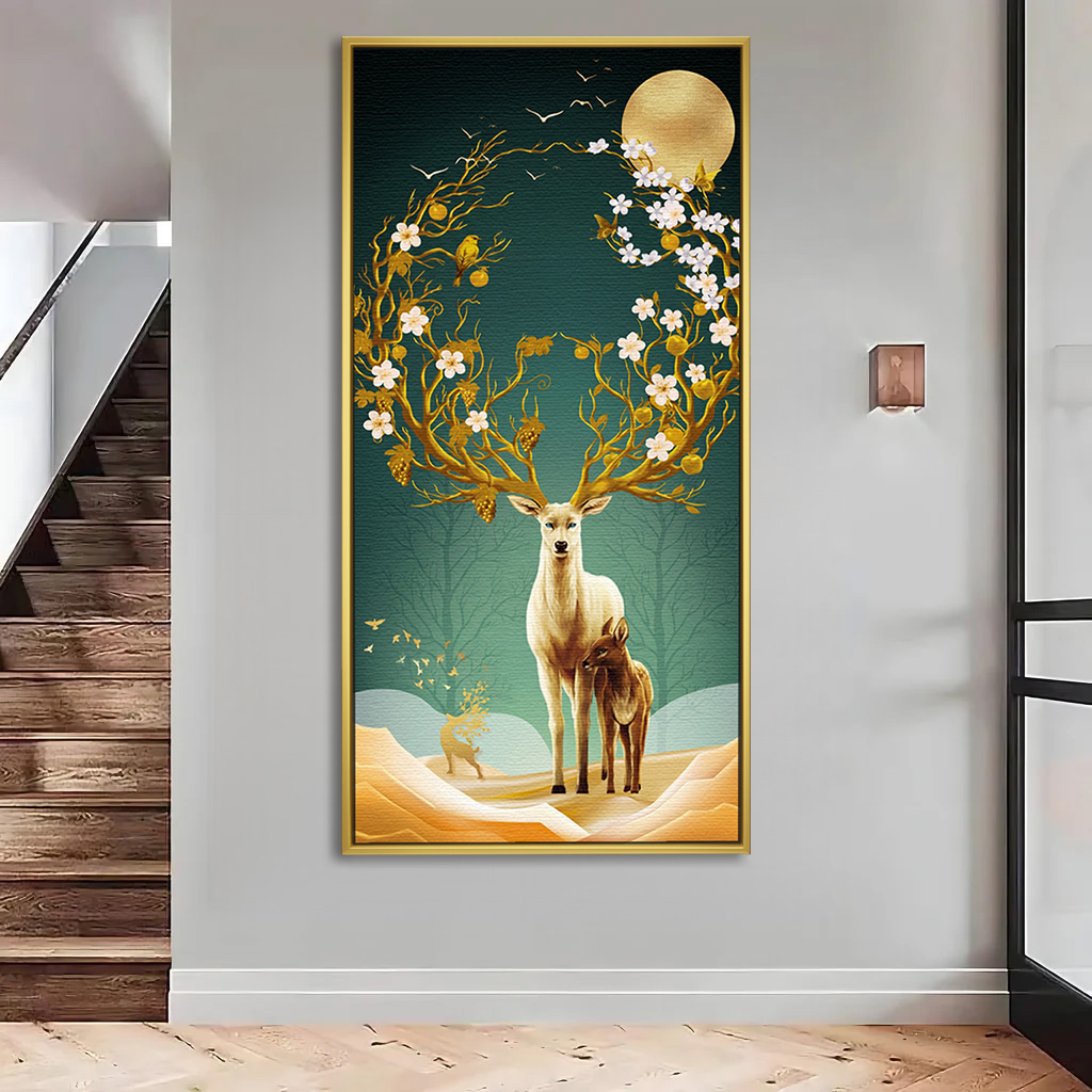 Blossoming Tree Antler Deer Family Vastu Painting