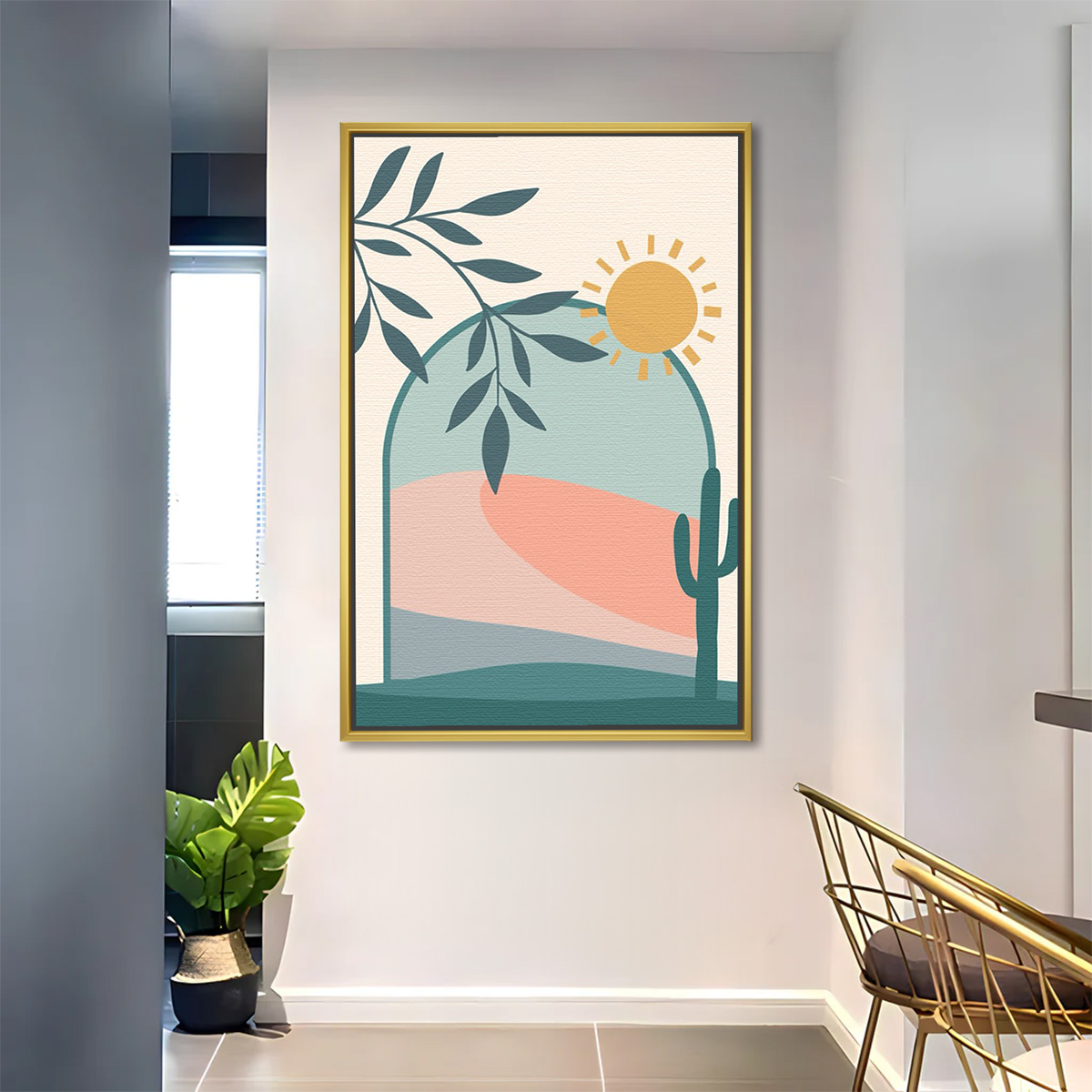 Boho Cat with Plant Sunshine Scene Art