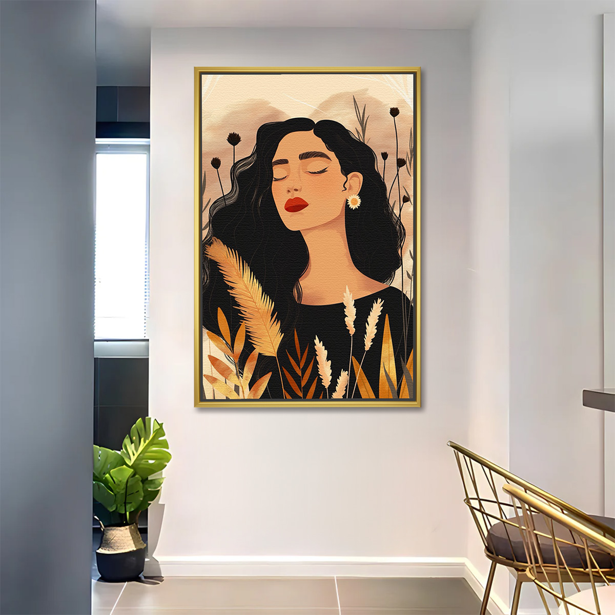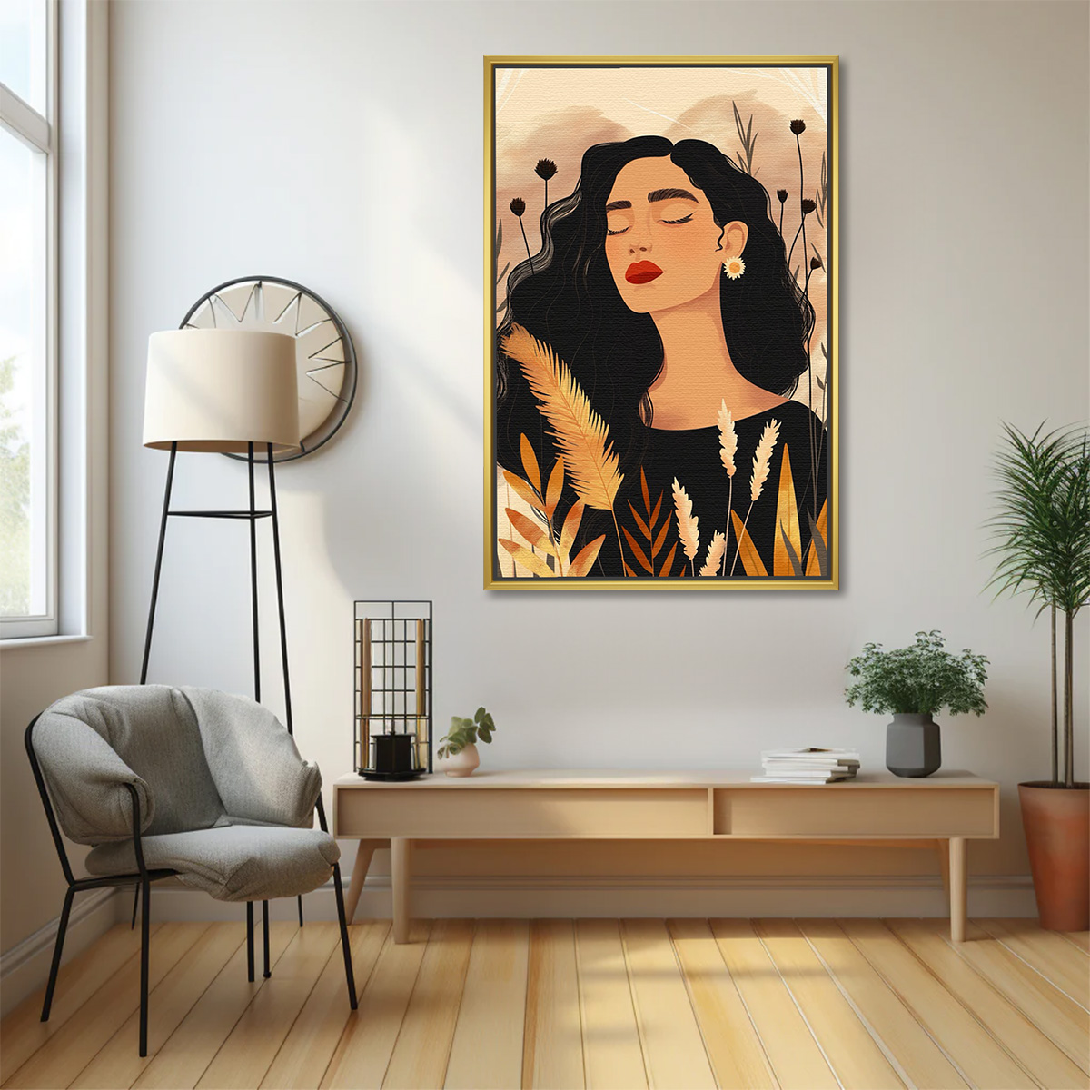 Boho Woman in Autumn Grass Painting