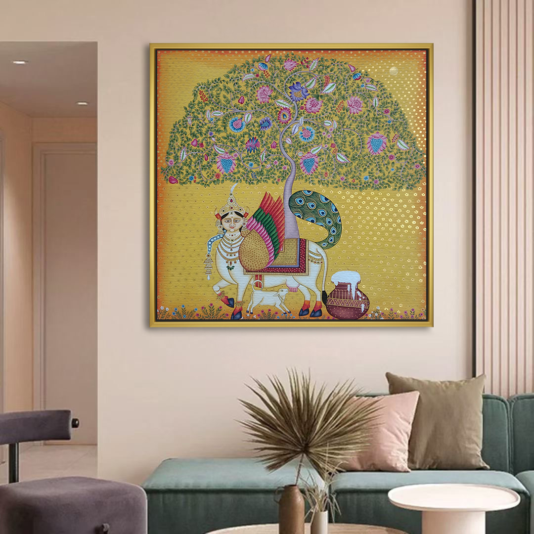 Divine Kamadhenu Cow with Kalpavriksha Painting