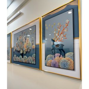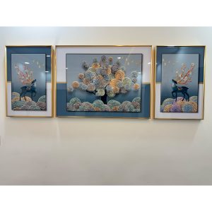Eternal Tree of Life with Deers Crystal Glass Painting – Set of 3