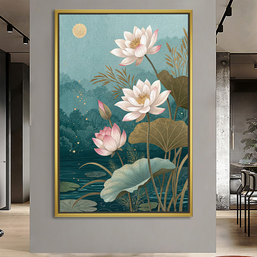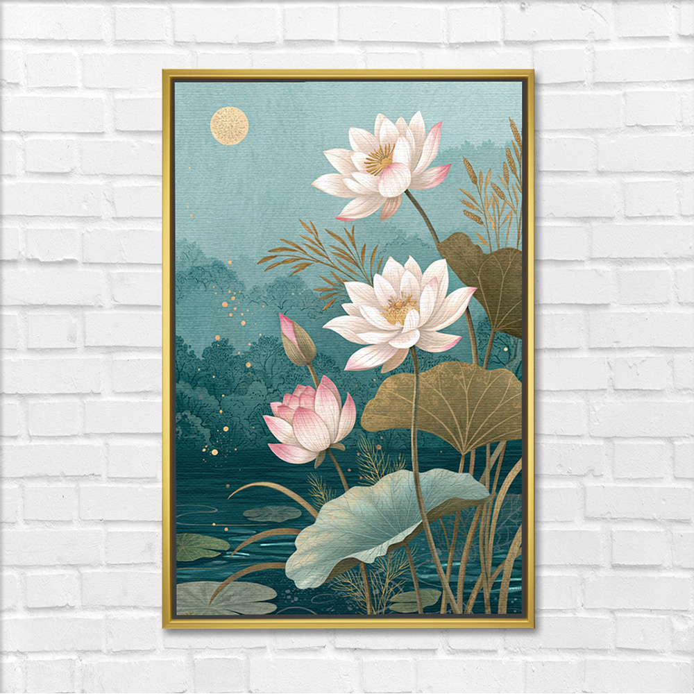 Ethereal Moonlit Lotus Painting