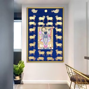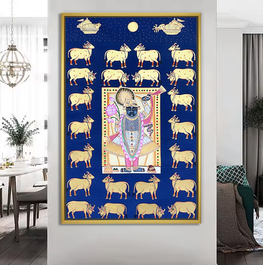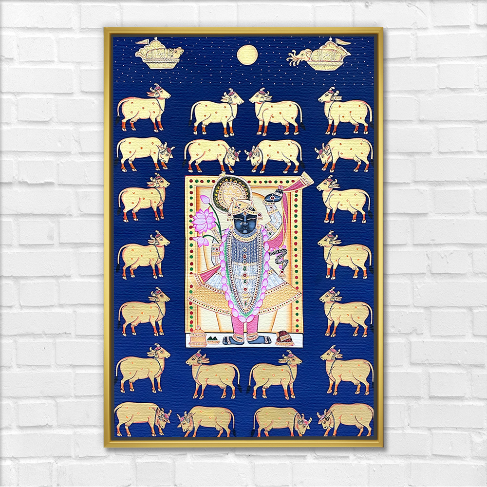 Gau Charan Shreenathji with Cow Motif Pichwai Painting
