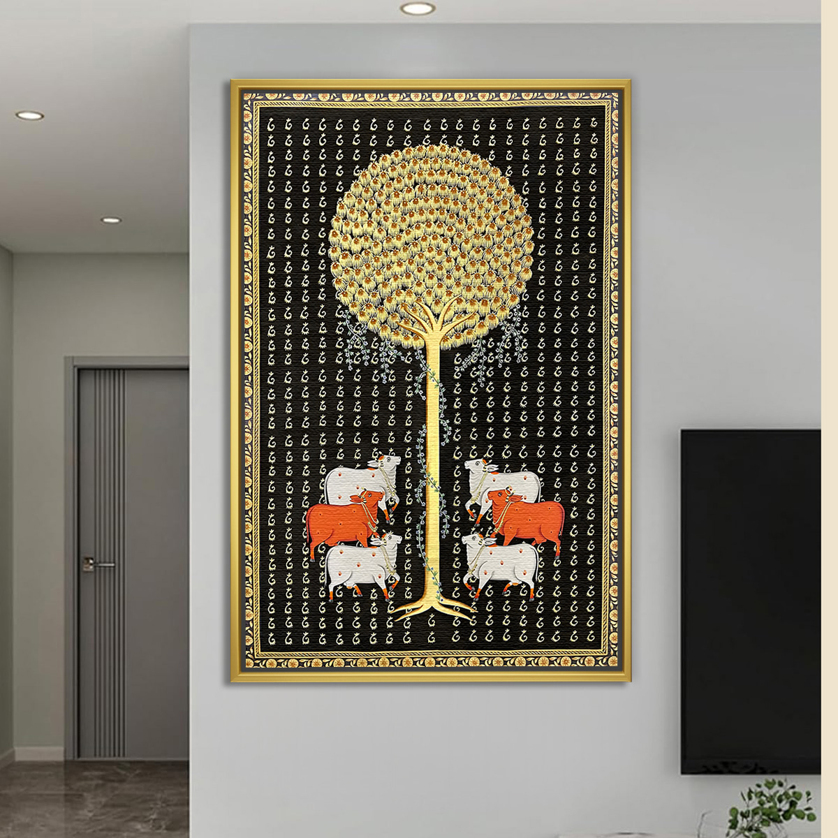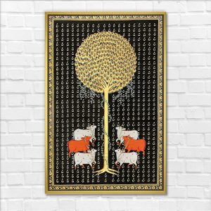 Golden Kalpavriksha with Sacred Cows Pichwai Painting
