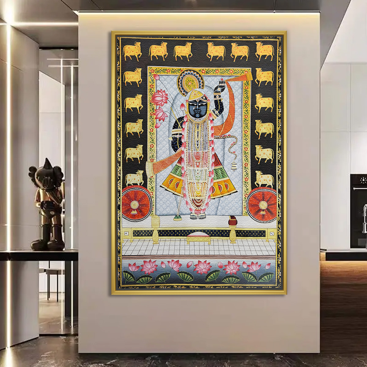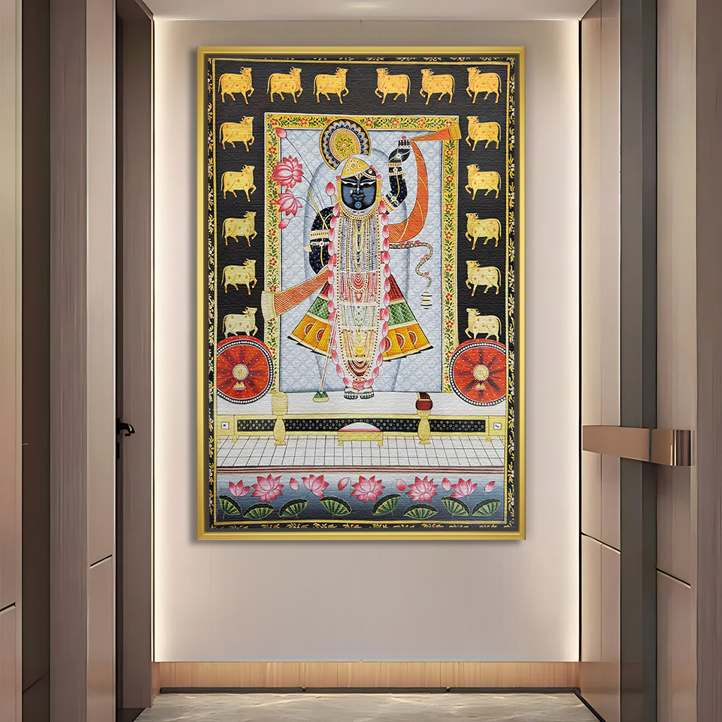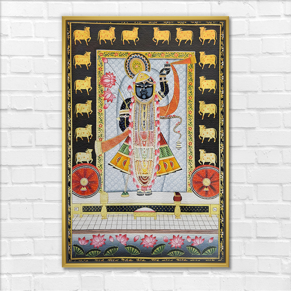 Haveli Darshan Shreenathji with Lotus Pichwai Painting