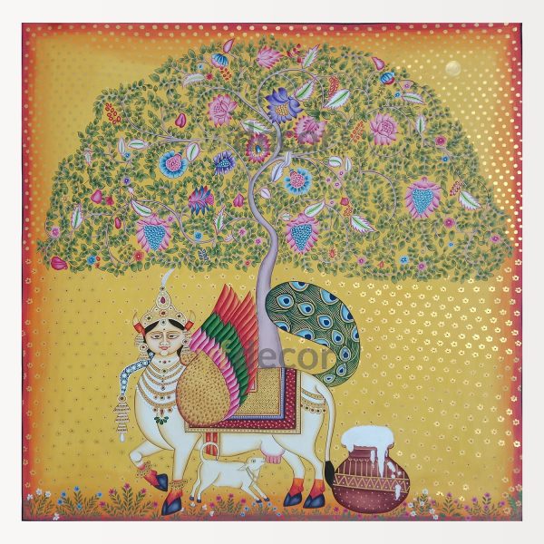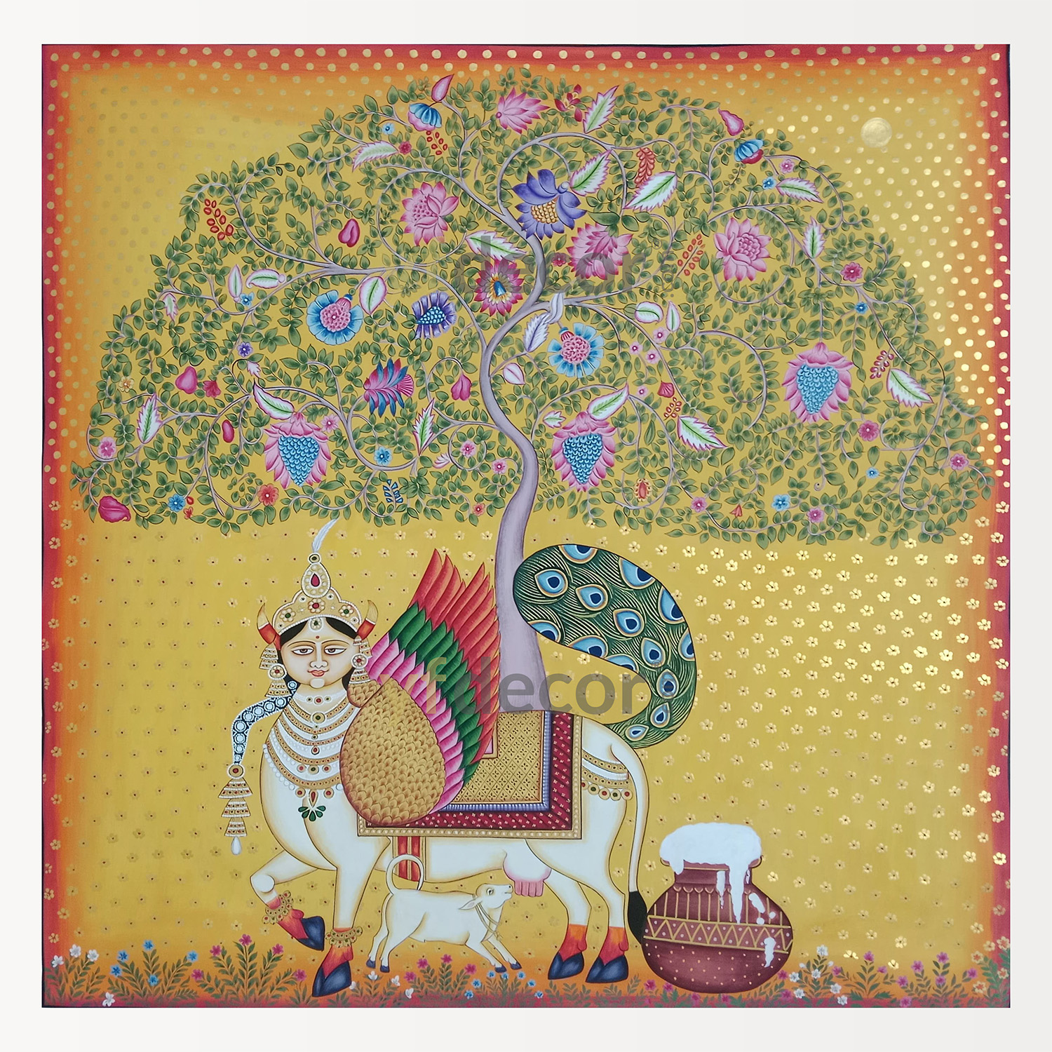 Kamdhenu Under Kalpavriksha Divine Handpainting