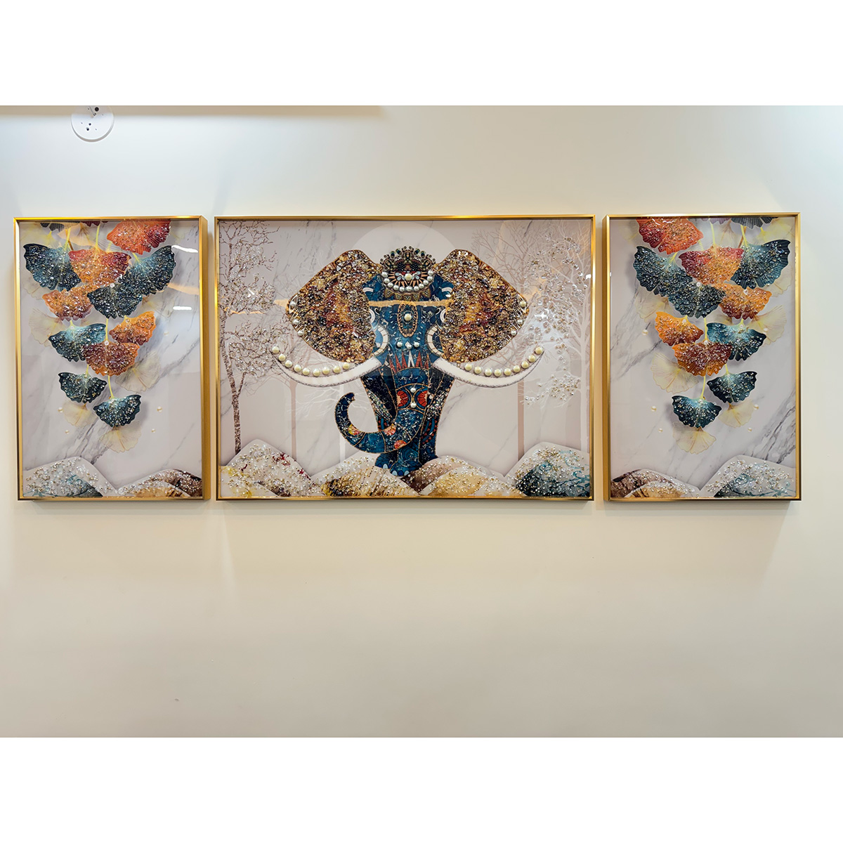 Majestic Rajasthani Crystal Glass Painting – Set of 3(with Pearls)