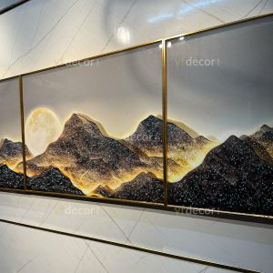 Moonlight in the Mountains Crystal Glass Painting – Set of 3