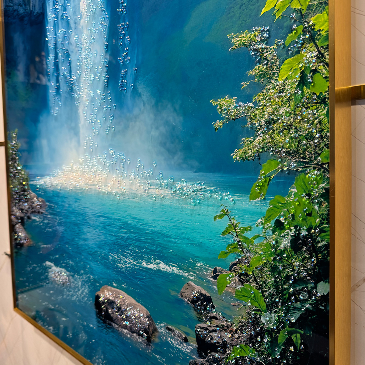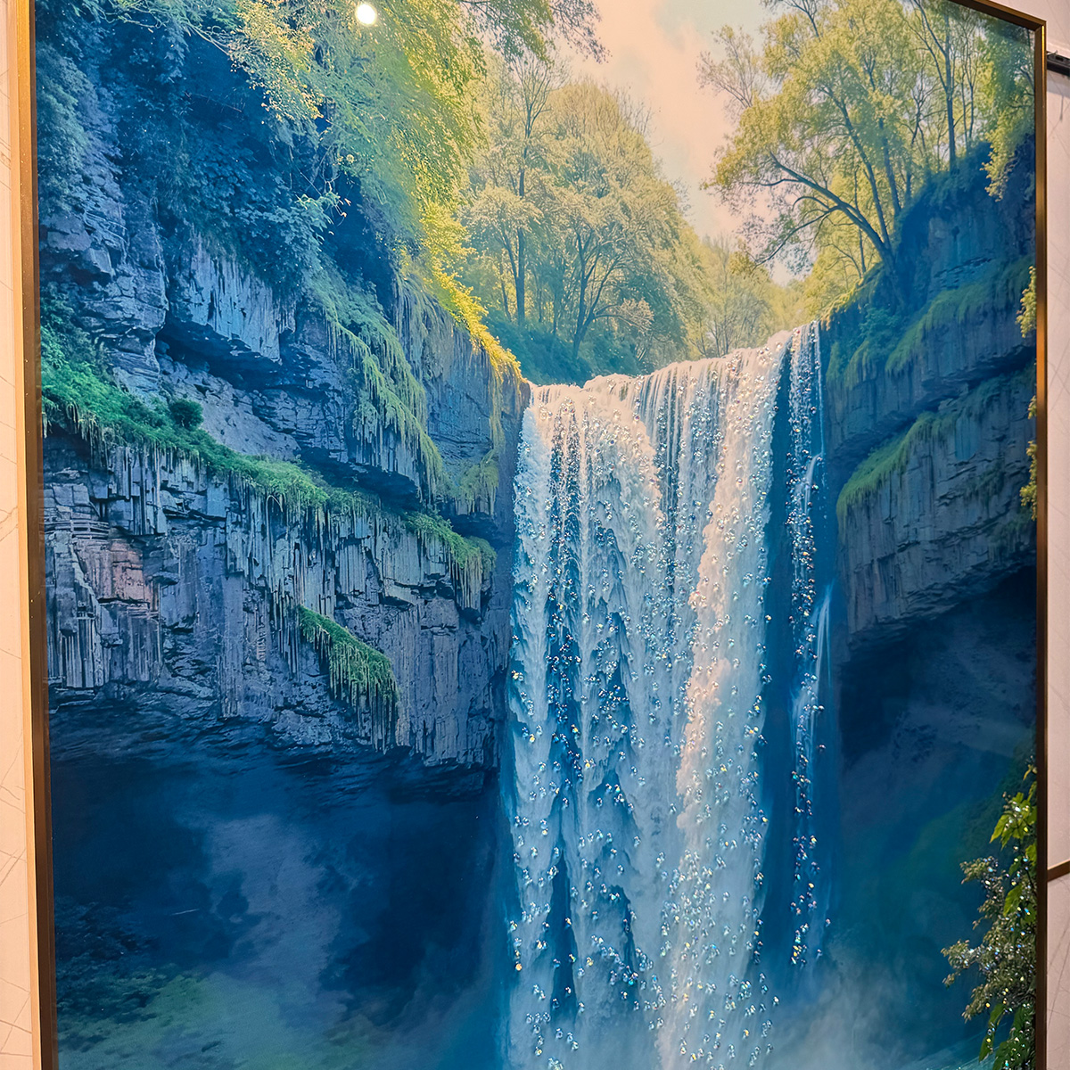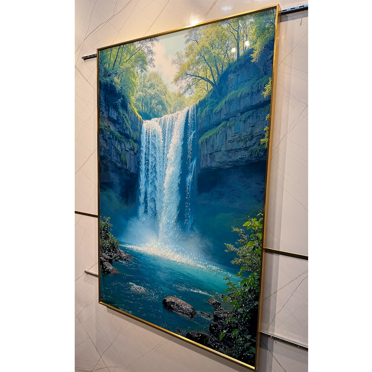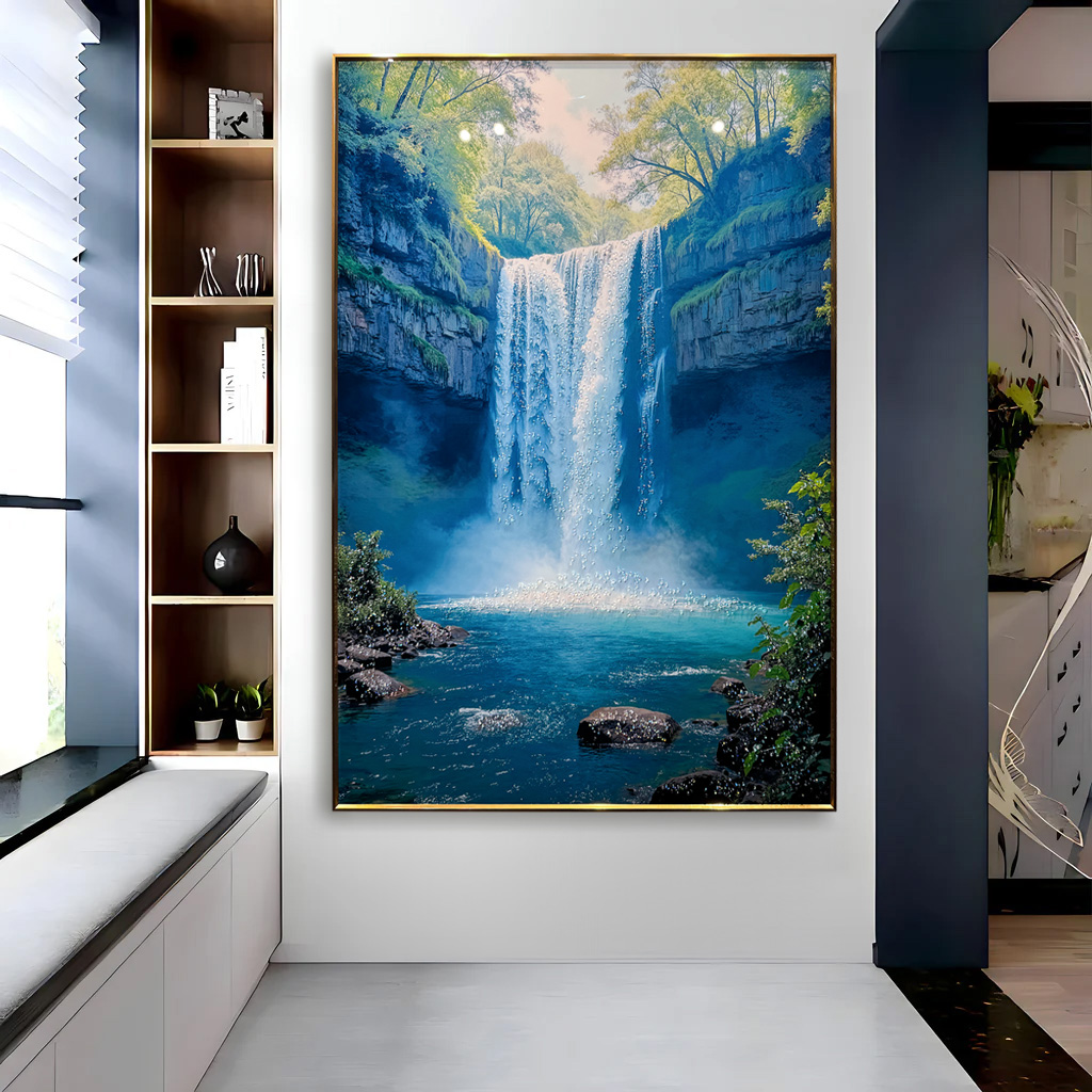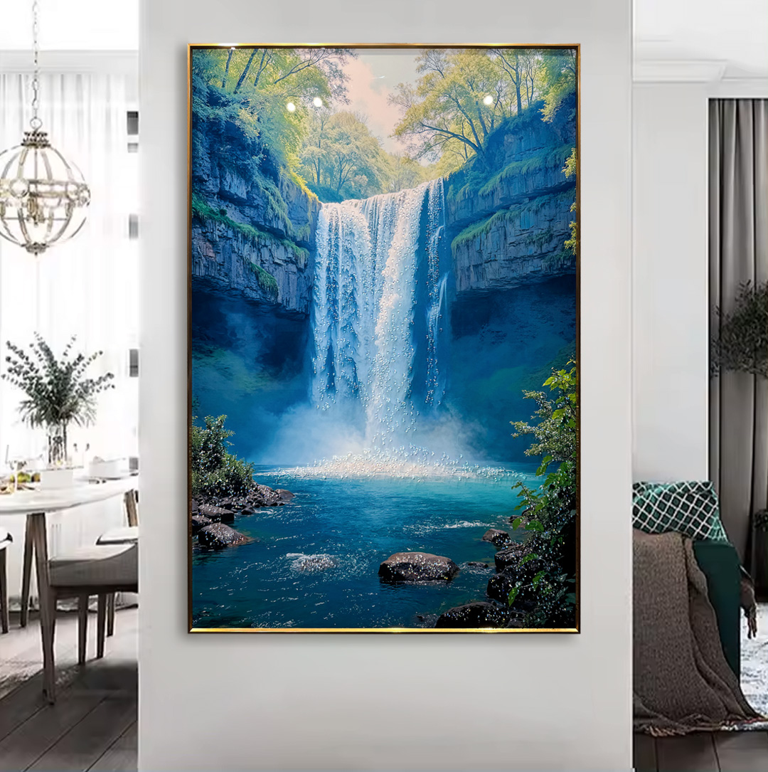 Nature’s Symphony Waterfall Crystal Glass Painting