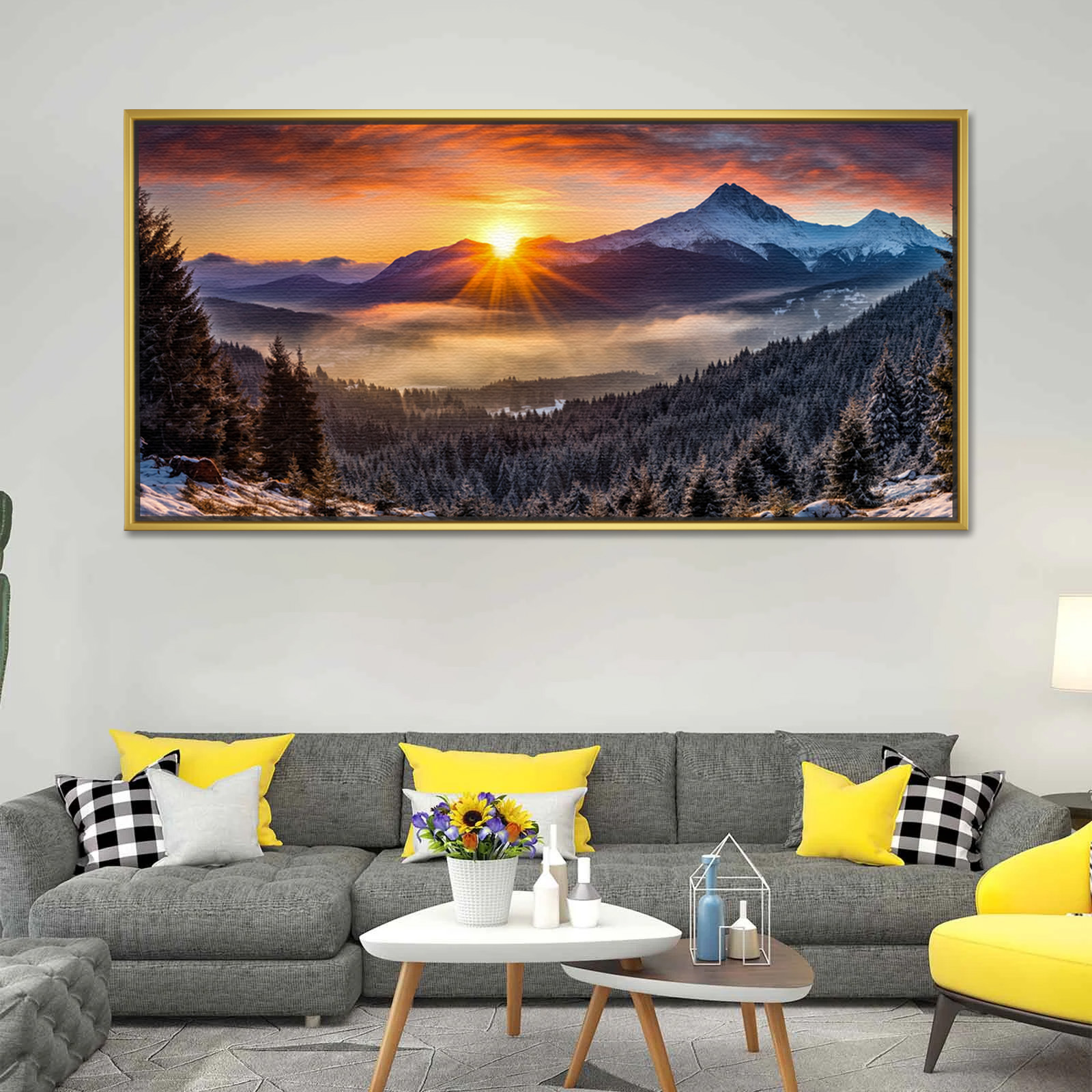Panoramic Snowy Woods Sunrise Vastu Painting