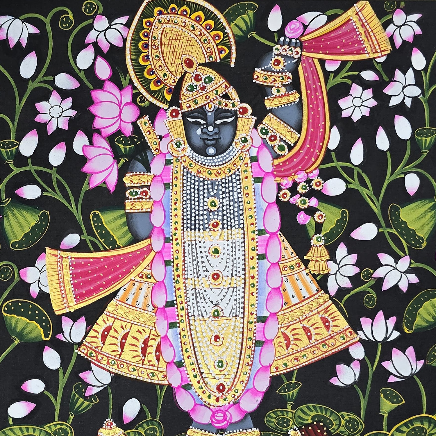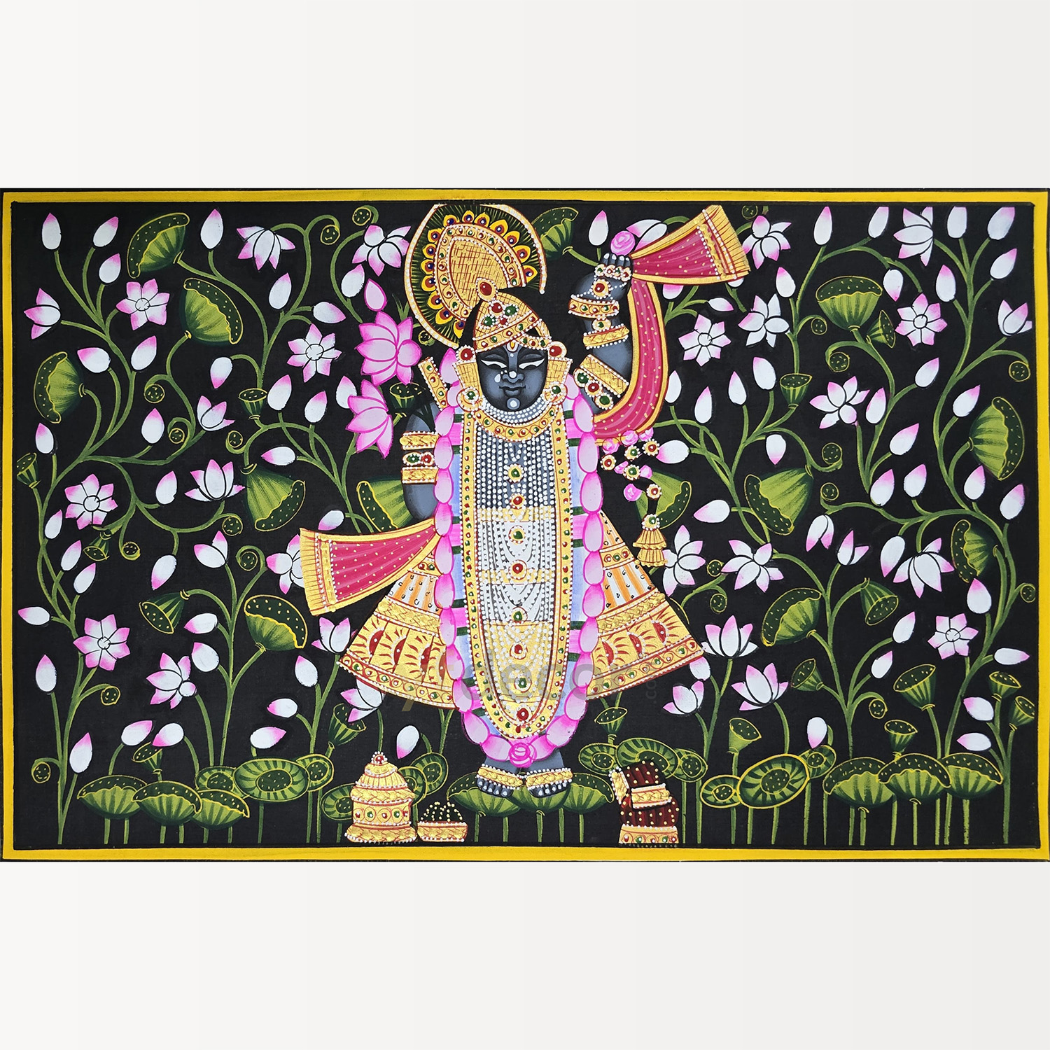 Pink Lotus Celebration Hand Painting of Shreenathji