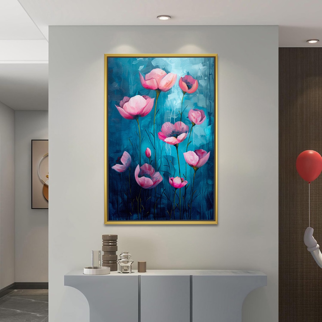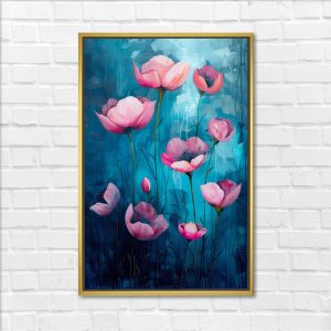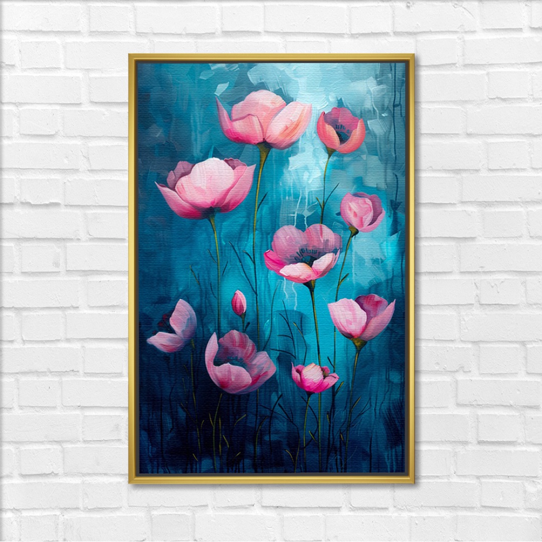 Pink Poppies On Luminous Teal Art