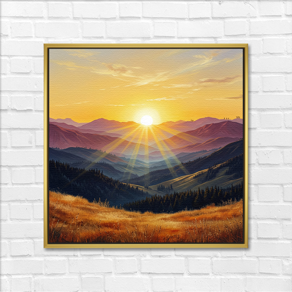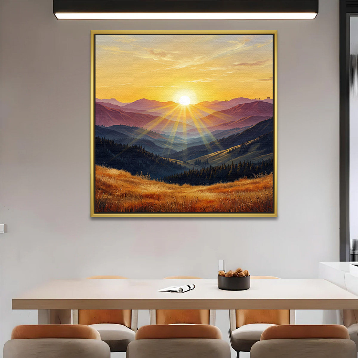 Prosperous Golden Ridge Rising Sun Painting for Vastu