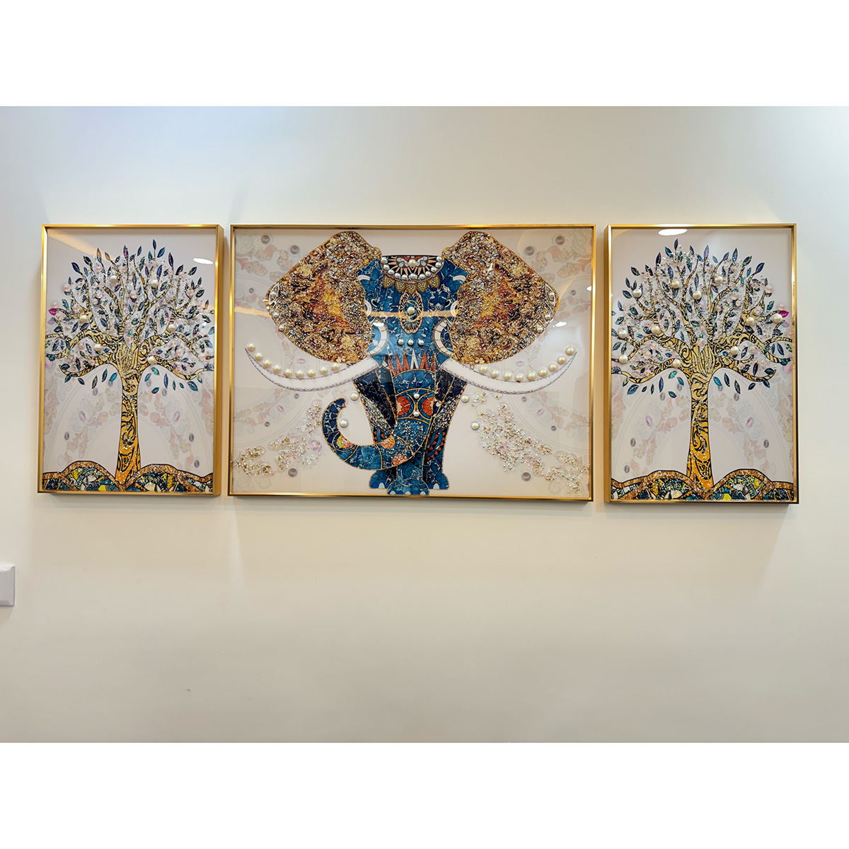 Royal Rajasthani Crystal Glass Painting – Set of 3 (with Pearls)