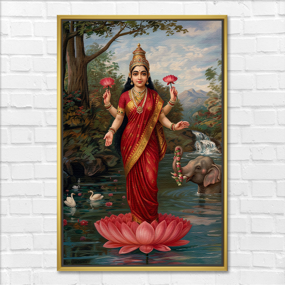 Serene Standing Goddess Laxmi In Nature Spiritual Wall Art