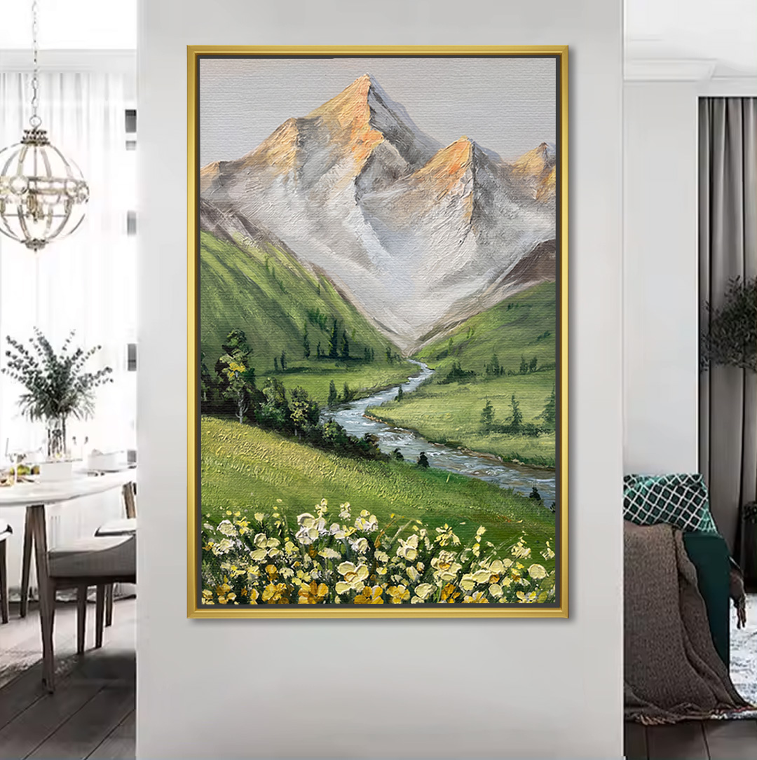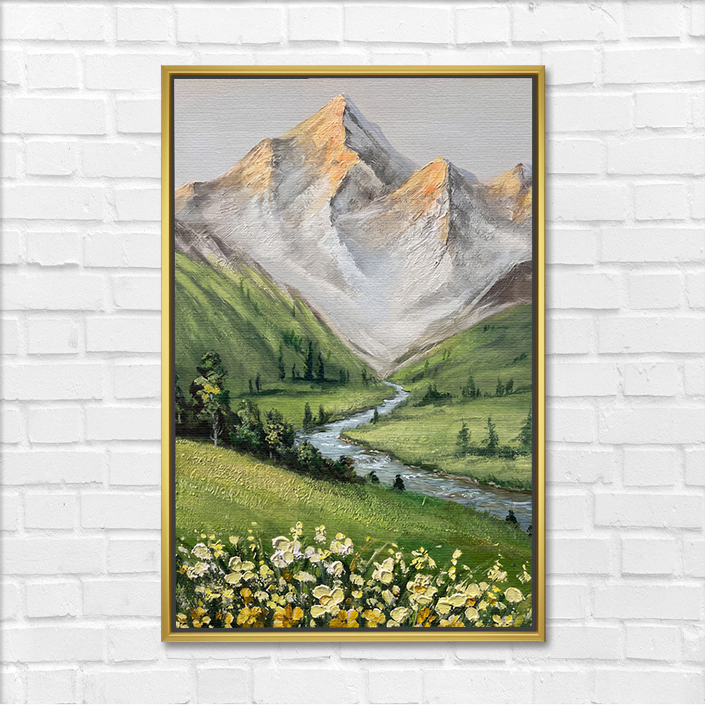 Serene Valley Stream Mountain Painting