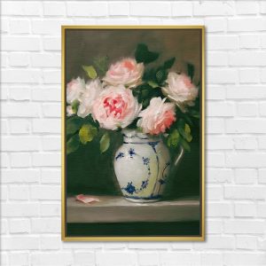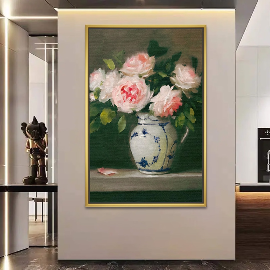 Soft Blush Roses Porcelain Still Life Painting