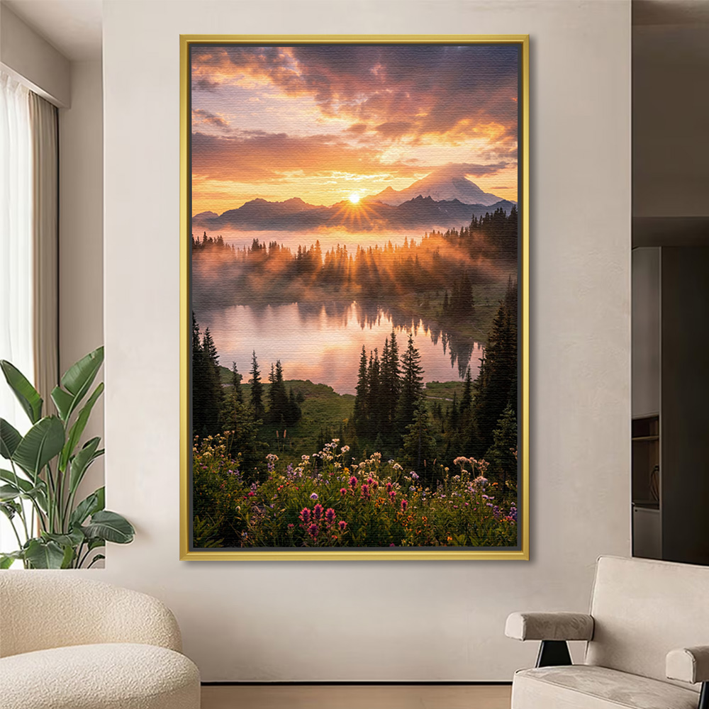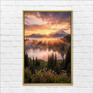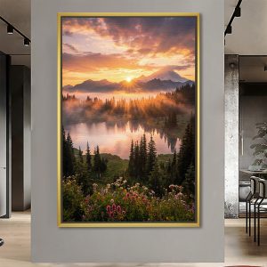 Tranquil Alpine Lake Rising Sun Vastu Painting