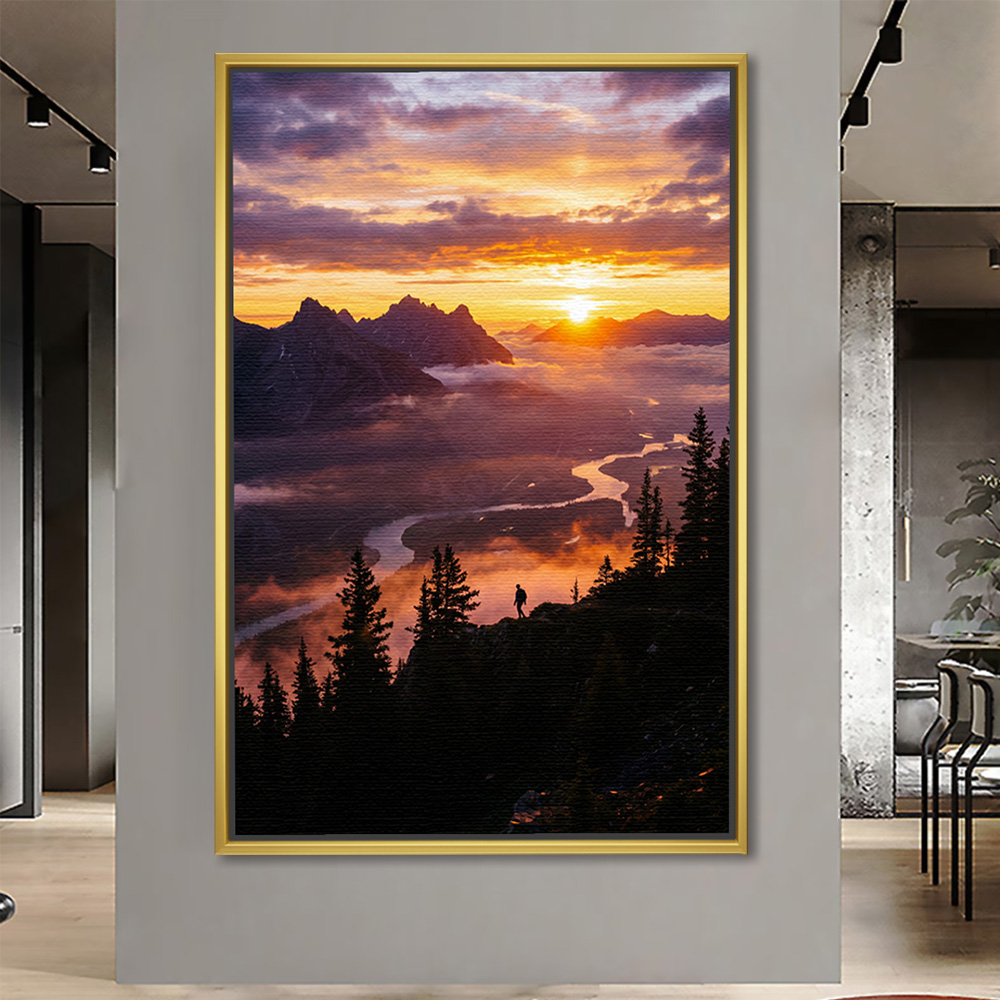 Vastu Rising Sun Painting of a Majestic Mountain River