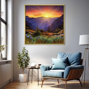 Vibrant Mountain Peak Rising Sun Vastu Painting