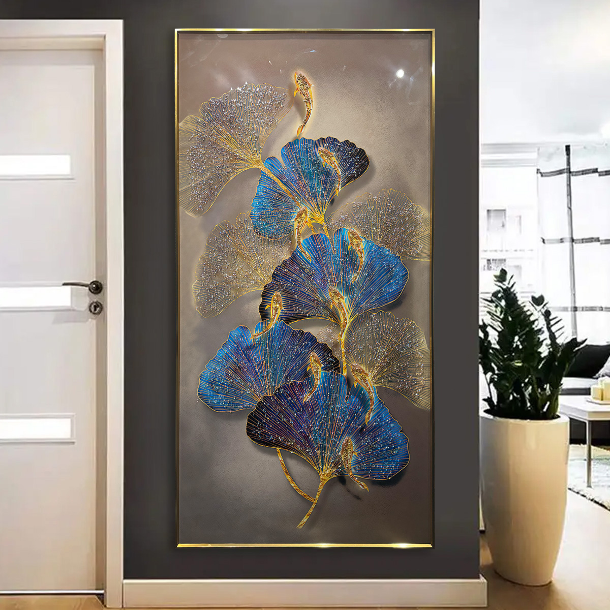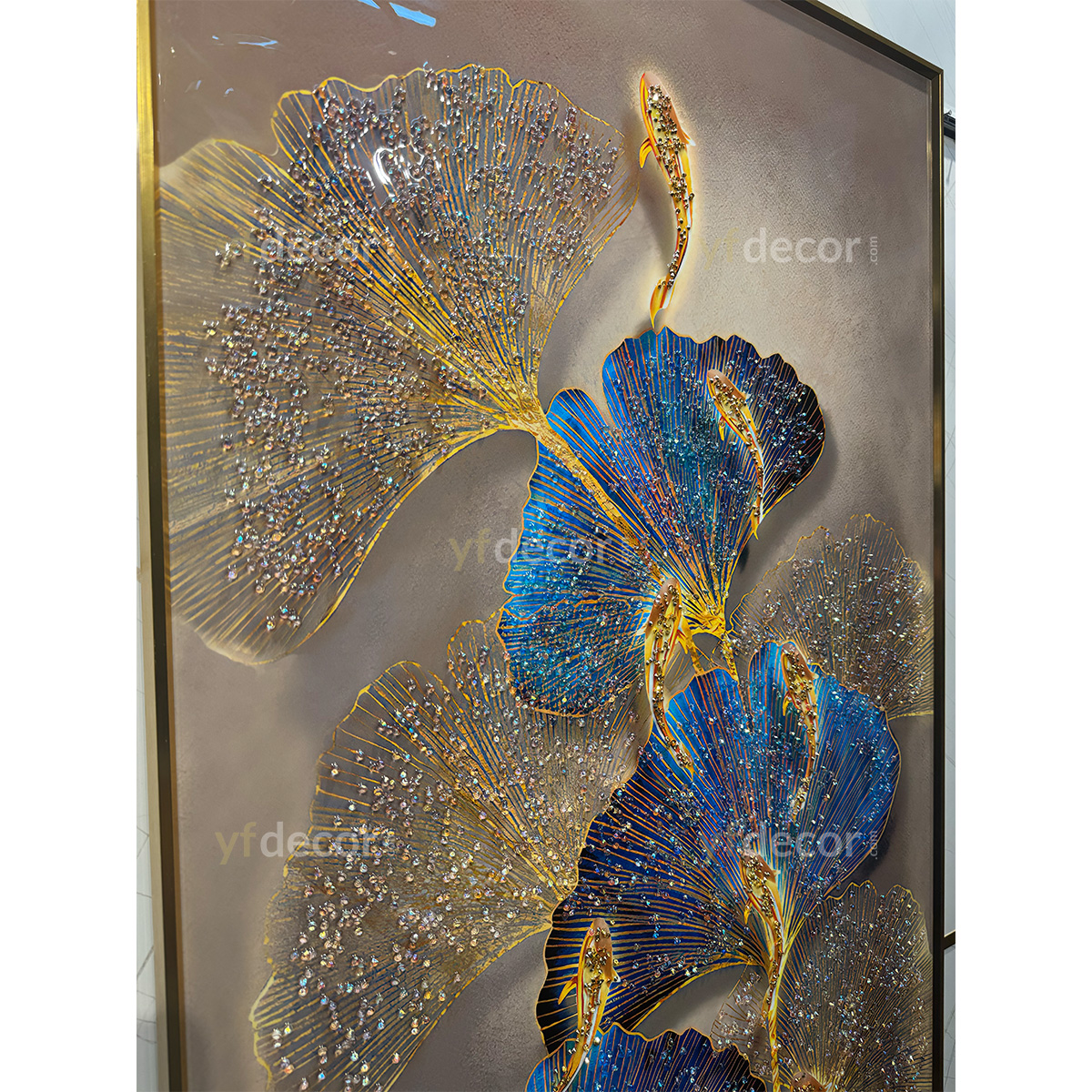 Whispers of Ginkgo Koi Fish Crystal Glass Wall Art