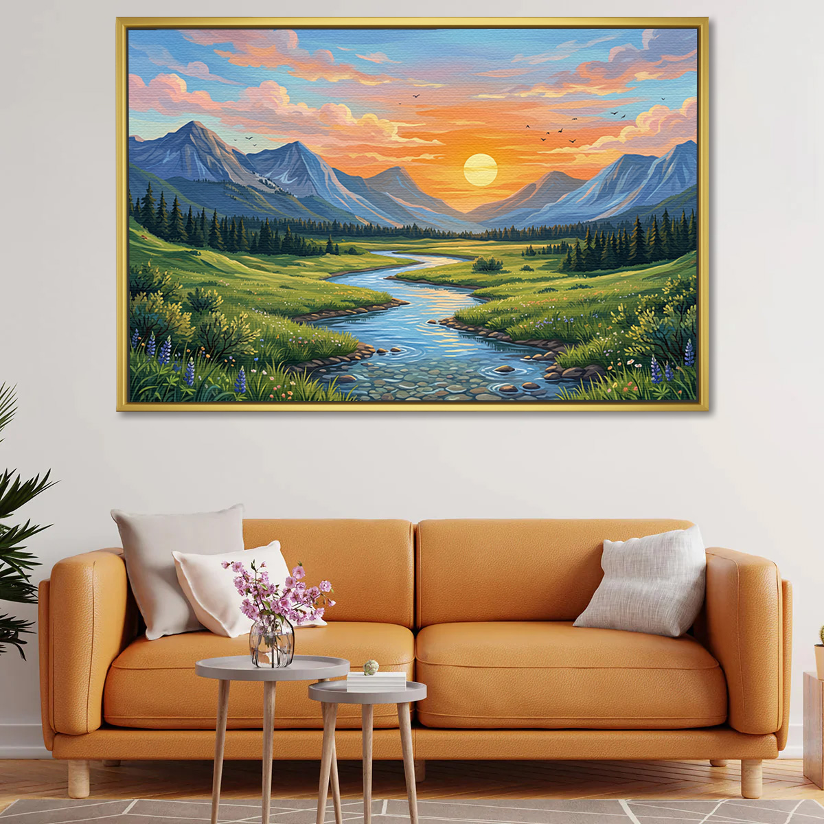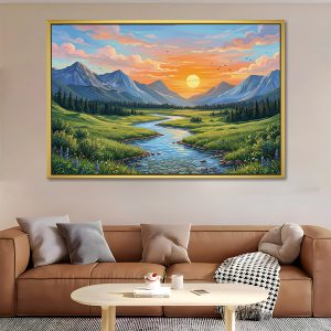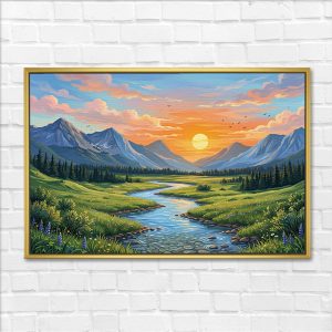 Winding Valley Stream Sunrise Painting for Vastu
